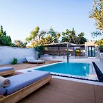 My Mykonos Hotel Mykonos Town har ett mysigt läge cirka 16 minuter till fots från Mykonos gamla hamn. Det erbjuder solterrass, uteplats och gemensam lounge. Detta 4-stjärniga hotell harr 45 rum med utsikt över trädgården. Det är beläget inom 3 km från Ftelia strand.